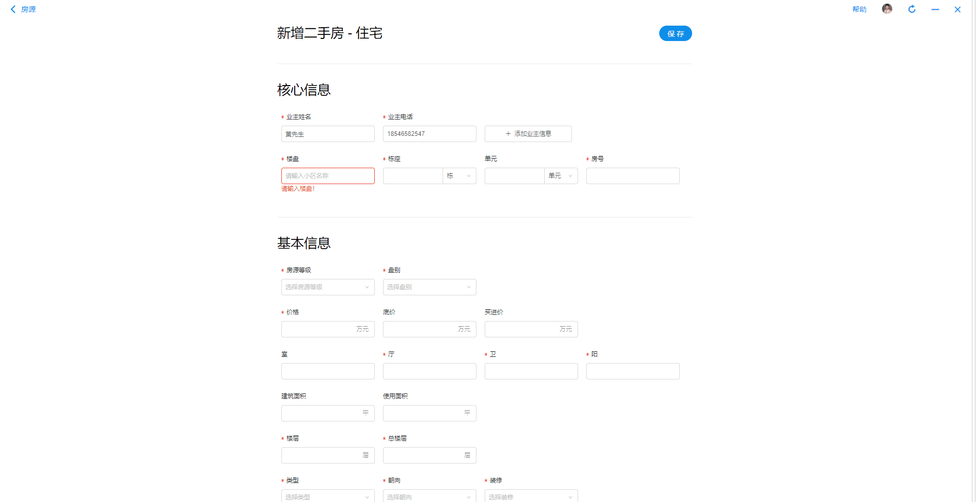 完成这些操作后,经纪人录入该小区的时候只能根据楼栋规则录入,不会出现房源录错、因为单元号或者房号写错造成重复。